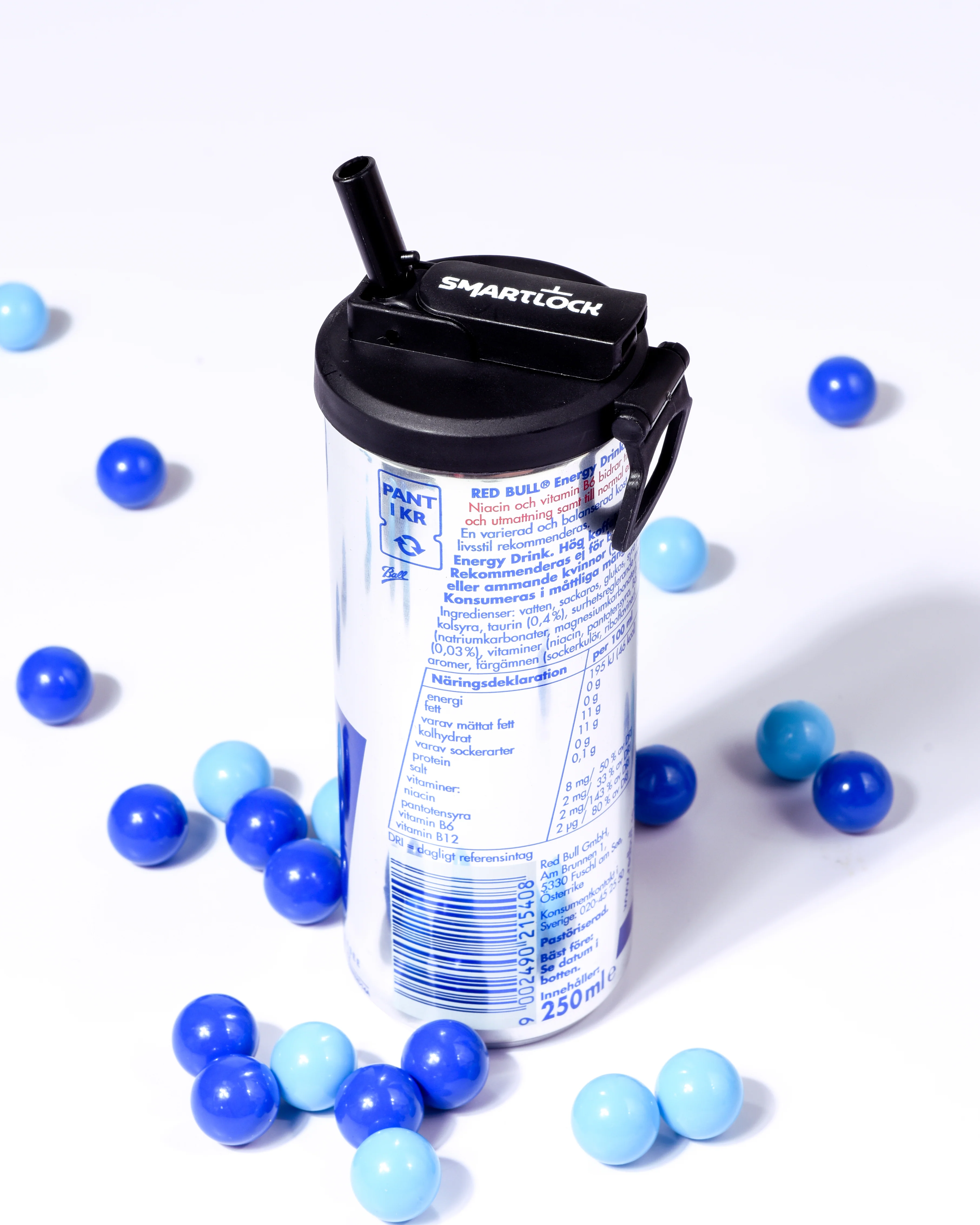 SmartLock 2.0 – the world’s only lid designed for slim cans like Red Bull 250 ml / 8.4 fl oz and other energy drink cans with a 5.1 cm top diameter.